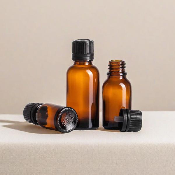 Glass Oil Bottle With Screw Cap , Blue / Green / Brown / Clear Essential Oil Bottles Images |