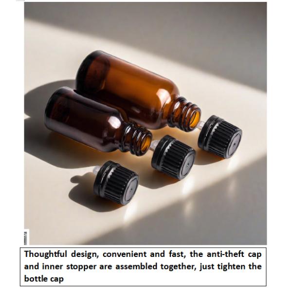 Medicinal Grade Glass Plug Essential Oil Bottle 10ml , 15ml ,20ml ,30ml , Brown Bottle With Screw Cap Images |